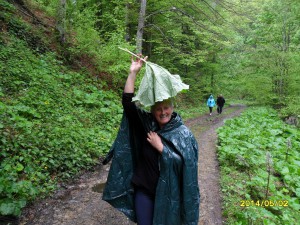 Aztán az indulás hajnalán leszakadt az ég. Éppen akkor, amikor kiléptünk a lépcsőház ajtaján. Mire a vasútállomásra értünk "pacallá" áztunk, annak ellenére hogy esőkabát volt rajtunk. A vonaton nem volt ülőhely, a peronon álltunk Szolnokig én és a két gyerek (az egyik 14, a másik 11 éves). Mások is álltak de engem csak ez érdekelt. A lábam beledagadt a vizes zokniba és cipőbe. Mikor végre leültünk csak egy nagy ürességet éreztem és szerettem volna hazamenni. De reménykedtem. A 10 napos túra alatt szinte mindig esett az eső. Állandóan a ruhák és cipők szárítgatásával kellett foglalkoznom, mert mindig attól féltem, hogy megfázik valaki a családból. Egyetlen napon volt napsütés, egy-két óráig!