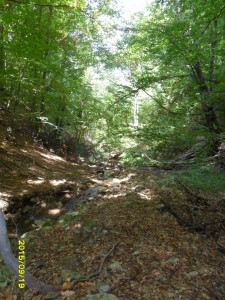 Később egy szurdokban csordogált tovább. Sokszor repkedő bogárka-felhóben kellett haladni. Több hónapos esőtlenség után voltunk ott, nem is értem honnan kerültek oda.