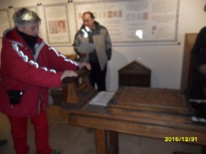 Végül Vizsolyban fejeztük be az év utolsó napján a körutat. Biblialapot nyomtattam és persze itt is megnéztük azt a honfoglaláskori templomot, ahol őrzik a vizsolyi Károli Gáspár által lefordított Bibliát.