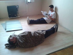 A parkettázás nagyon jól sikerült. Csináltunk egy poénos képet,